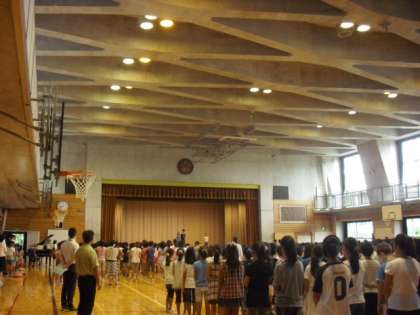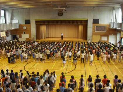 体育館に2学期はじめの校歌の歌声が流れて始業式は終了し、児童たちの新しい生活がスタートしました。
