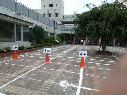 昇降口前は、ソーシャルディスタンスがとれるよう、迎えています。
