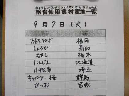 9月7日(火)の給食