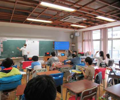 2学期の外国語の授業は、オンラインを併用した形で始まりました。教室の子どもたちは、人数が少ないなかでも、発音練習やリスニングに集中して取り組んでいました。オンラインの子どもたちも画面上で挙手をしたり、しっかりと口を動かしたりと各家庭でもきちんと学習していたようでした。次回からは、新しい学習に入りますので、オンラインで受けている子どもたちも心配のないように丁寧に授業をしていきます。