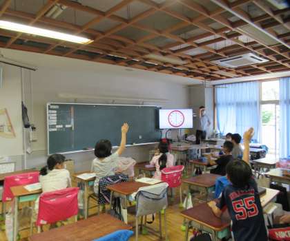 4年生は2学期に入り、時間の学習をしています。1から20までの数字は昨年学習したので、今回は21から59までを新しく学びました。特に13と30や15と50などの発音の違いを丁寧に練習しました。何回も練習を重ねることで、時計を見て何時何分ということを英語で言える子どもも増えてきました。次回も引き続き、丁寧に練習していきます。