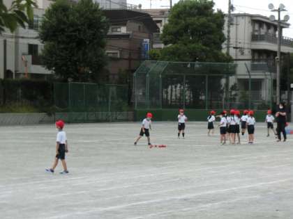 広い校庭でおもいっきり体を動かししっぽ取りゲームを行っていました。