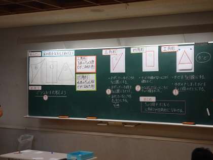 単元は算数の「三角形と四角形」で、三角形や四角形の