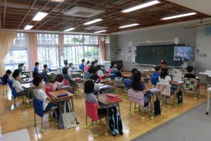 2年生は、2学期最初の学年朝会をオンラインで行いました。3つのことを伝えました。1つ目は、授業の準備や登校時間を守るといった時間の意識について。2つ目は、学年フロア・トイレ・本棚といった共有部分の使い方について。3つ目は検温チェック表・すぐーるについての話をしました。話が終わった後、各教室で振り返ると、「この3つを守ると、みんなで気持ちよく生活できる。」と、基本的生活習慣の意識向上につながりました。