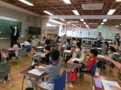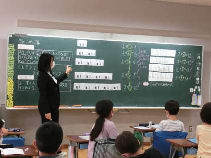 と考えながら、2×1や2×2と、かけ算の式で表すことを学習しました。