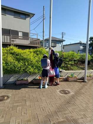 10/18 5年生 校旗を揚げる