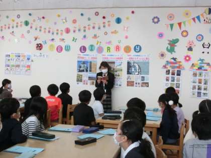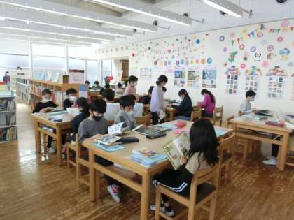 新しい図書室の使い方を聞き、これまで教室で借りていた本を一人1冊返して、図書室を完成させてくれました。