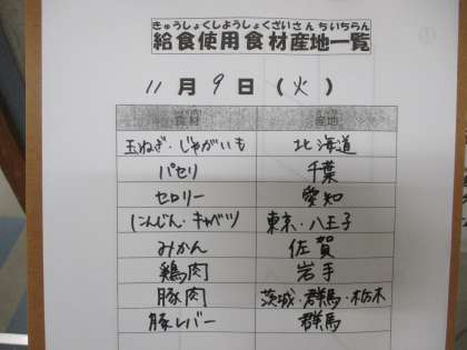 11月9日(火)の給食