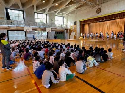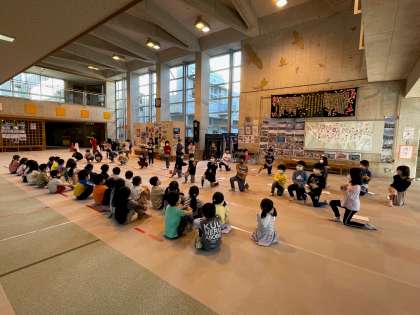 2つのクラスが同じ曲をやりますが、各クラスで踊りや動きを考えているので、2クラスごとに見せ合うミニ発表会をしました。