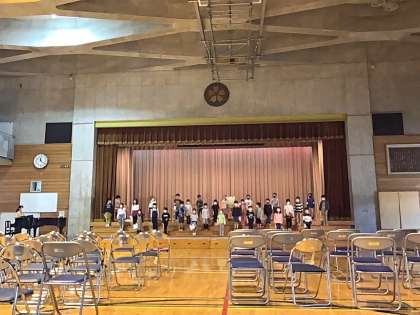 1年生は、来週の花の子学習発表会にむけて、体育館や教室で練習をがんばっています。