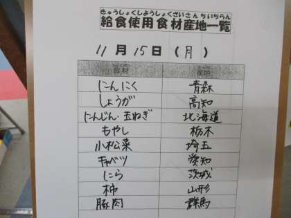 11月15日(月)の給食
