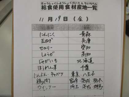 11月19日(金)の給食