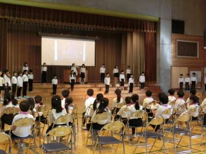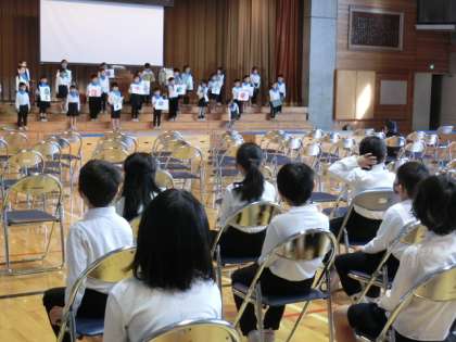 2年生を見る1年生、4年生を見る3年生など上の学年の発表を見ることで、「演奏がうまいな」「言葉がはっきりしていていいな」「あのようになりたい」と目標をもつことができていました。