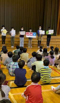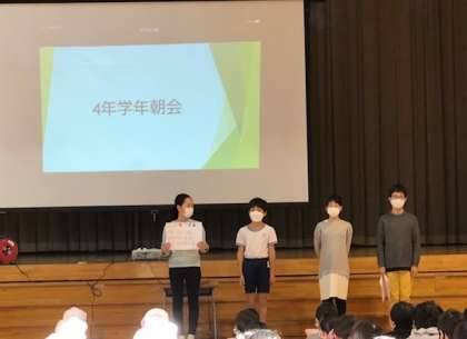 先週に引き続き、代表委員会が1・4年生の学年朝会でユニセフ募金についてのお知らせをしました。1年生には、SDGsの17の目標を見せながら、分かりやすい言葉で言い換えて発表しました。