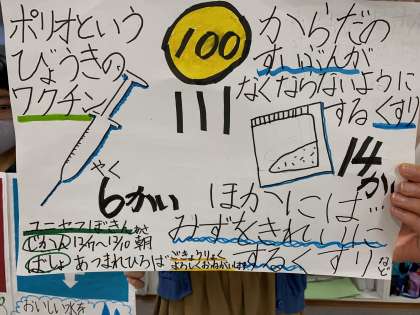 4年生には、SDGsの達成すべき目標について詳しく説明をし、ユニセフとSDGsの関わりを関連させながら発表しました。