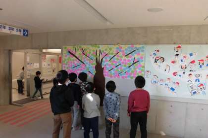 2年生のエールの木が完成しました。「葉っぱに、友達のいいところを書いてみよう。」と伝えると自然と多くの葉っぱが集まり、緑が生い茂り、素敵な木ができました。「冬が近づいているけど、心がポカポカしているから葉っぱが出てきたのかな。」「自分の当たり前にしていたことが友達に感謝されてうれしい。」「こんな行動をしたり気持ちをもったりすると、笑顔になる。」と言い、思いやりのある行動を振り返り、親切にするよさにあらためて気づくことができました。