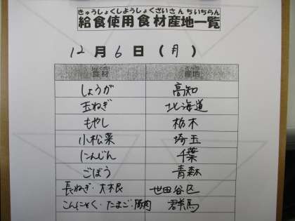 12月6日(月)の給食