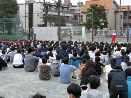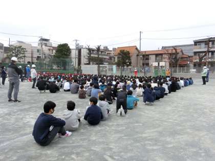 教室に戻ると、「火事はいつでも、どこでも起きるもの。」「その場所で何が最もふさわしい行動なのかを考える。」「放送に耳を傾ける姿勢をとらねばならない。」等を述べ、防災に対する意識を高めました。