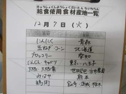 12月7日(火)の給食