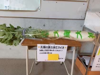 そばには、「何キログラムでしょう?」という張り紙がありました。
