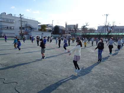 高学年は『ultra soul』の曲に合わせたリズム縄跳びに