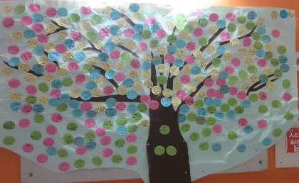 「学習発表会で、大きな声でセリフが言えていて素敵でした。」や「逆上がりを教えてくれてありがとう。」などと書いた葉でいっぱいになりました。自分のことが書かれているカードを見つけると、うれしそうに読んでいる姿が見られました。今後も互いのよさを認め合える取り組みをしていきたいと思います。