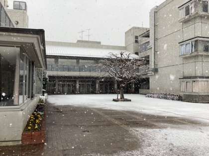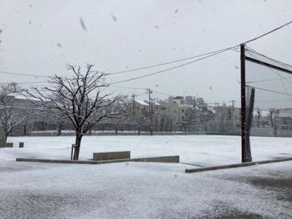 午前中から降り始めた雪が、あっという間に積もり、校庭が真っ白になっています。