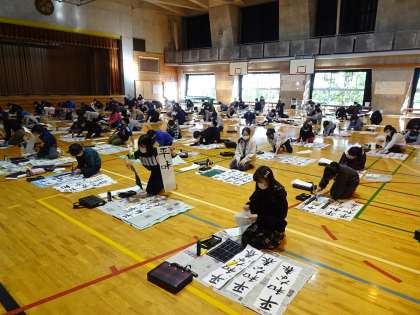 本日、6年生は体育館で書き初めを行いました。