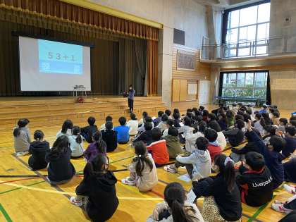 3学期が始まり、最初の学年集会を行いました。3学期は54日と短く、今学期が終わるといよいよ6年生になります。そこで、3学期をどう過ごしていけばよいか、目標を確認しました。