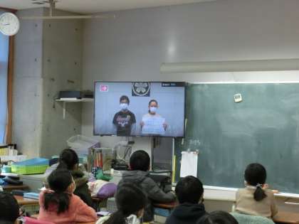 校長先生のお話の後、代表委員会からユニセフ募金について、