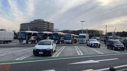 バスの座席は、感染症対策のため、2人席を1人で使用しています。