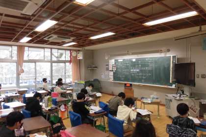 数のまとまりに着目し、大きな数の大きさの比べ方や数え方を考えています。今回は数の相対的な大きさについて学習しました。問題を見て、「100が10個で1000だから、23個は2300」と説明したり、「1000をくずせば100が10個になるから、3400は100が34個」と説明したりする中で、百を単位として数の大きさの意味を理解しました。まとめの際、「3400は十を単位にすると340個あつめた数」「いろんな表し方がある」と発言し、数を多面的に捉えることができました。