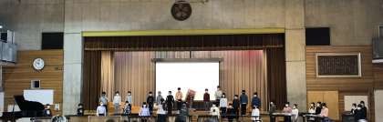 体育館で各クラスごとに、2分の1成人式の発表をしました。