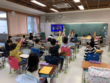 初回の授業では、担任から出されるなぞなぞを楽しみながら考えました。