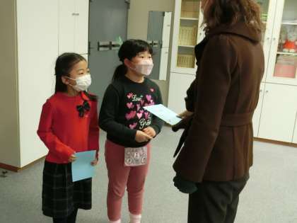 昼休みに、1年生と2年生と3年生の子ども達が、校長室にやってきました。