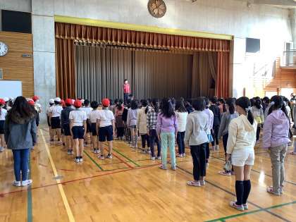 本日は3年生最後の学年朝会が行われました。4年生に向けて気持ちよくスタートが切れるよう、2つお話をしました。