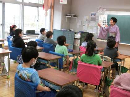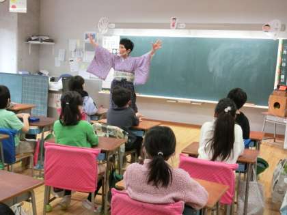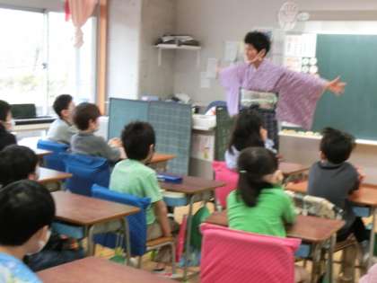 地域や花の子クラブでお世話になっている「お話のおばさん」こと村上さんをお呼びし、2年生の各クラスで「おまんじゅうの好きなお殿様」という昔話を聞かせていただきました。