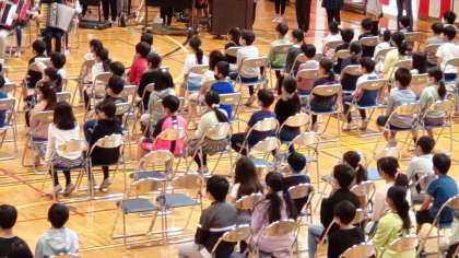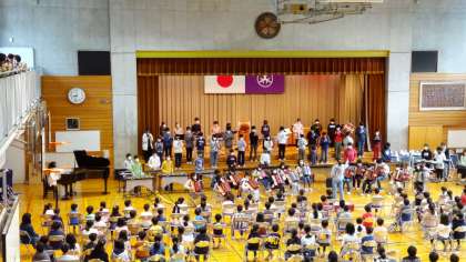 今日から22日までの4日間の朝の時間に、6年生が全校児童対象に体育館で合奏の発表をきかせてくれています。