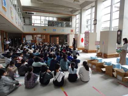 学校全体の机や椅子の移動、式場である体育館の準備、配布物の