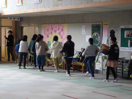 明日の入学式に向けて、新6年生の子どもたちが登校し、準備を