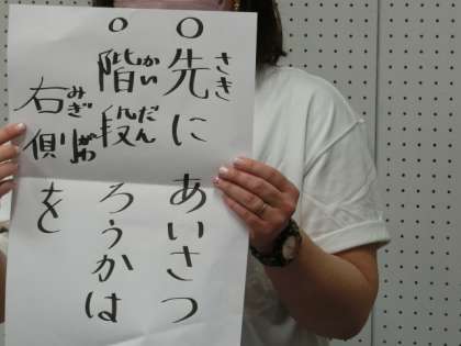 「先にあいさつ かいだん、ろうかは、右側を!」