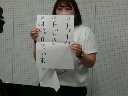 「チャイム したじき はい、立つ、です!」