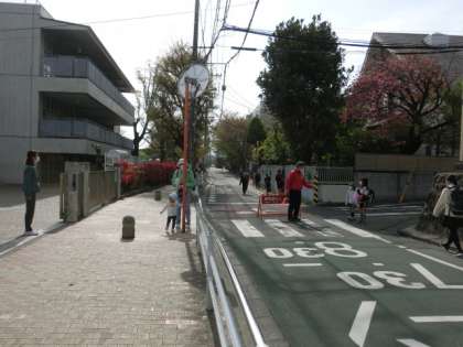 また、経堂4丁目の交差点では、桜丘町会の皆様が旗を振って見守ってくれていました。