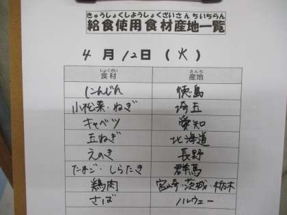 4月12日(火)の給食