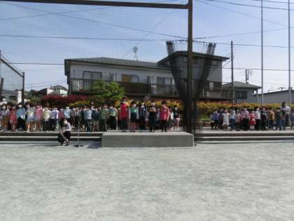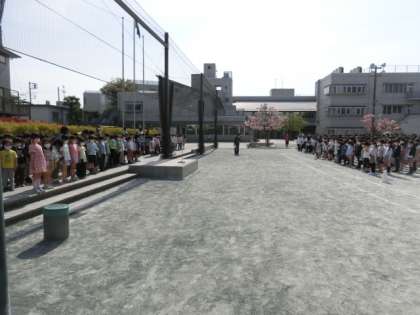 今日は、朝から全校児童が校庭に集合し、入学した1年生を迎えました。