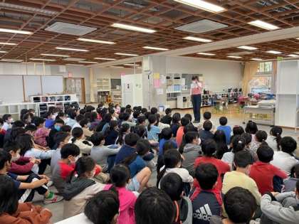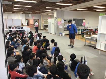 4/19(火)に、今年度初の学年朝会を行いました。まず、担任紹介ということで、担任が隣のクラスの教員を紹介する他己紹介をしました。子どもたちは、普段知らない教員の一面を知れたことに嬉しそうな表情でした。