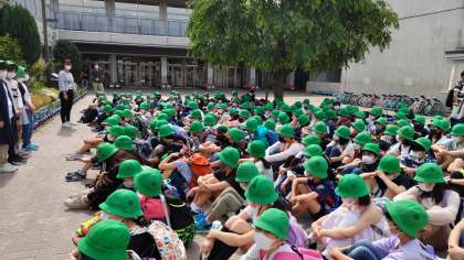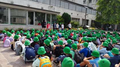 本日は、5年生の遠足です。8時50分にレンガに集合し出発式を行いました。