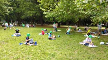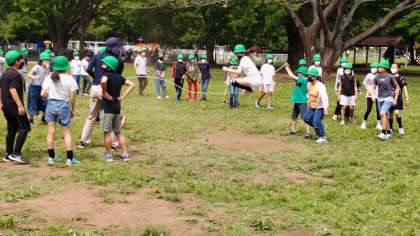 その後、長なわ跳びでは、それぞれのクラスで協力して跳ぶことができていました。