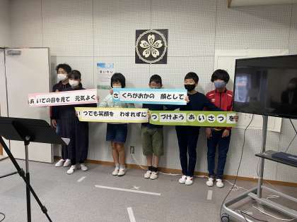 気持ちのよいあいさつを続けることで、自分も相手も心が晴れやかになることを伝え、このスローガンを意識して、あいさつの輪を広げていくように呼びかけました。