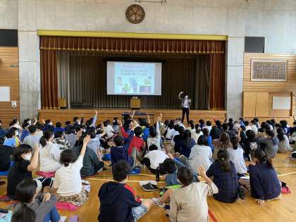 初めに、メディアバランスとは、メディア(テレビや新聞、タブレット等)の利用と、睡眠や食事、家族との時間などをバランスよく両立させることであると教えていただきました。子どもたちは、おうち時間でメディアをどのように使っているかを振り返り、自分の生活を見つめ直しました。そして、メディアに振り回されず主体的に使うことや、するべきことに優先順位をつけて取り組むよう教えていただきました。